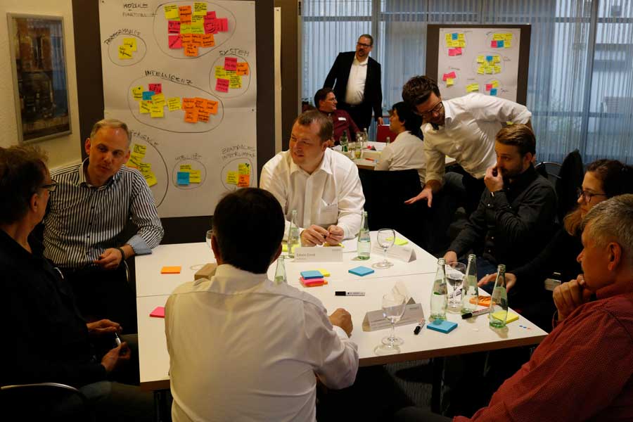 Die Kongressbesucher hatten am zweiten Kongresstag die Wahl zwischen fünf Praxis-Workshops. Besonders begehrt war „Design-Thinking“, bei dem die Teilnehmer ihre Wünsche an das CRM der Zukunft formulierten. Dazu stellten Sie sich einen fiktiven CRM-Nutzer vor, um dessen Wünsche in konkrete Visionen des zukünftigen CRM-Systems einzubauen. Auch die Workshops Privatkunden-Geschäftsprozesse, analytisches CRM, Beschwerde- und Verbandsmanagement boten einen regen Austausch unter Experten.