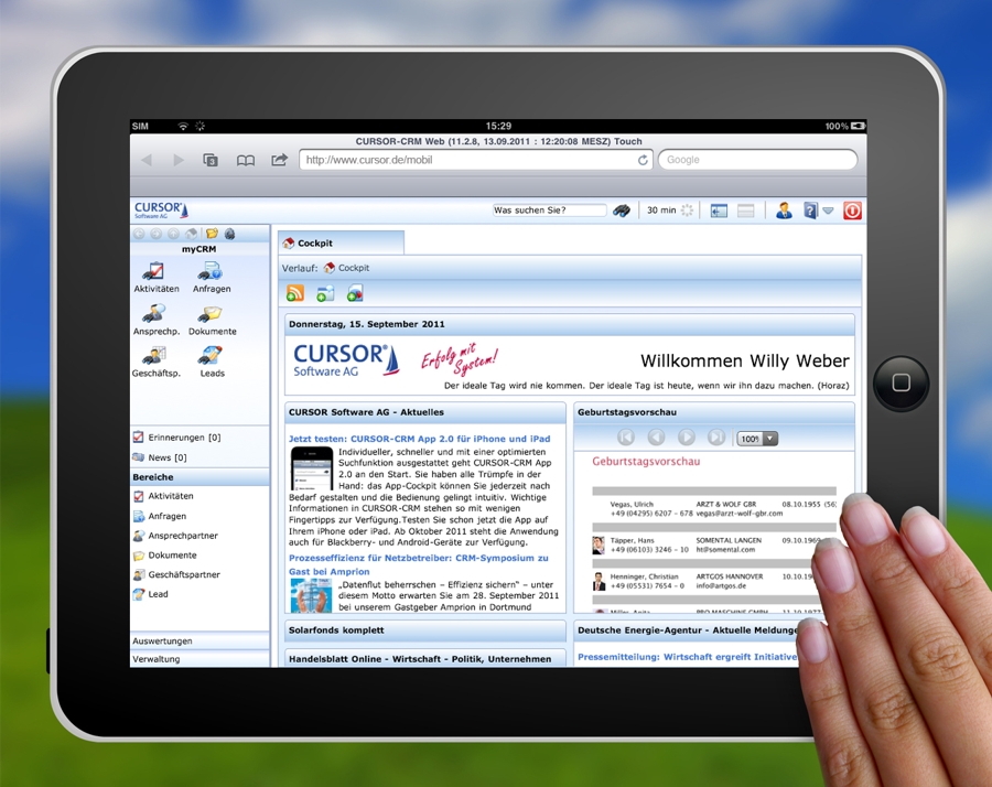 "Wichtige Aufgaben erledigt man am besten sofort. Mit CURSOR-CRM Web und dem iPad gelingt das überall - und die für sichere Entscheidungen benötigten Informationen sind stets zur Hand."