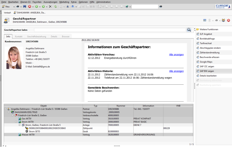 BPM ist eine Methode zur ganzheitlichen Gestaltung und Verbesserung von Geschäftsprozessen, die jetzt für die CRM-Applikationen von CURSOR zur Verfügung steht. „Der große Vorteil von BPM besteht darin, dass sich auch systemübergreifende Geschäftsprozesse vergleichsweise einfach gestalten und automatisieren lassen“, erläutert CURSOR-Vertriebsleiter Andreas Lange. „In der Praxis realisiert haben wir das zum Beispiel schon bei der Zählerstandserfassung. Der komplette Prozess wird in EVI abgewickelt, obwohl auch Masken aus dem ERP-System angezeigt werden. Früher musste man das CRM-System verlassen, um den Vorgang weiterzuführen. Nun gibt es keine Systembrüche mehr.“