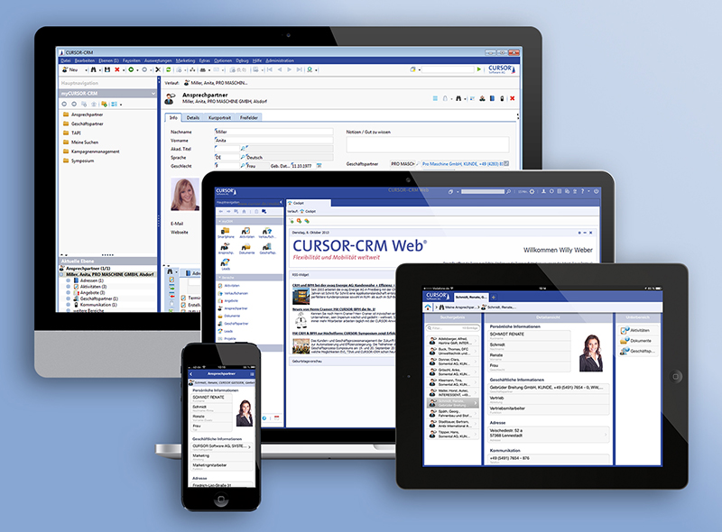 Software, die begeistert: die neuesten Versionen von CURSOR-CRM, EVI und TINA setzen in Sachen Attraktivität, Individualität, Mobilität und Produktivität neue Maßstäbe. Die HD-App, jetzt auch für das iPhone, und der Web Client bieten mehr Funktionen und verbesserte Sicherheit beim mobilen CRM. Zu den zahlreichen Highlights zählen eine Volltextsuche, die wie die bekannten Internet-Suchmaschinen funktioniert und den gesamten CRM-Datenbestand durchsucht, erweiterte BPM-Funktionen für mehr Flexibilität, eine erweiterte Groupware-Integration und Vieles mehr.