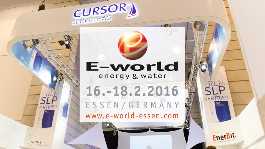 Vom 16.-18. Februar 2016 steht die Messe Essen ganz im Zeichen der Energiewirtschaft: Die E-world energy & water ist Europas größtes Treffen der Energie-Experten und Impulsgeber der Branche. Innovative Lösungen für erfolgreiches Kunden- und Geschäftsprozessmanagement finden Sie in Halle 3 an Stand 109: CURSOR präsentiert gemeinsam mit den Partnern affinis consulting und EnerBit Software, die begeistert und Beratung, die zum Ziel führt.