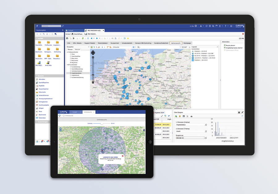 Analytisches CRM mit Geschäftsdaten- und Geoanalysen: Für Ihren perfekten Über- und Durchblick.
