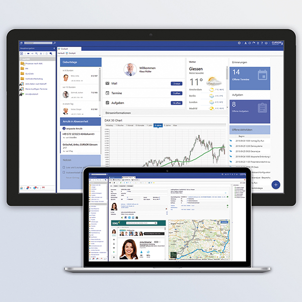 „Alles außer gewöhnlich“ heißt es mit der innovativen INFOBOARD-Technologie: Mit so genannten Infokacheln können Sie CURSOR-CRM ab 2016 ganz individuell mit visuellen Informationen gestalten. Sie basieren auf WEBVIEW-Technologie und liefern stets aktuelle Darstellungen.