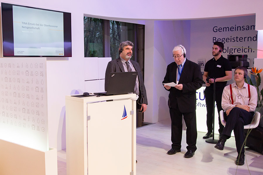 Ein Highlight des Messeauftritts des Softwareanbieters bildeten ein Expertentalk der Netzbetreiber Kärnten Netz und Oberhausener Netzgesellschaft. Günter Fenchel, ehemaliger Chefredakteur der netzpraxis und Energiewirtschaft-Experte, interviewte Klaus Beck von der Oberhausener Netzgesellschaft mbH und Andreas Pavluk von der Kärnten Netz GmbH. Beide Netzbetreiber sind überzeugte TINA-Nutzer und erläuterten, welche Prozesse im Unternehmen umgesetzt wurden und welche Vorteile dies in der Praxis mit sich bringt.