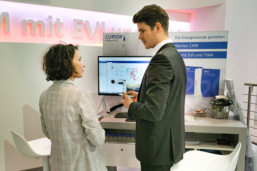 Unter dem Motto „Energiewende erfolgreich gestalten“ präsentierte die CURSOR Software AG dem Fachpublikum die aktuellsten CRM-Highlights rund um EVI, dem CRM für den Energievertrieb, und TINA, der Plattform für netzspezifische Geschäftsprozesse. Besonders im Fokus dabei: das Thema Prozessautomatisierung. So konnten Stand-Besucher live erleben, wie EVU energiespezifische Routineaufgaben mit den beiden CURSOR-Branchenlösungen im Handumdrehen automatisieren und so die Produktivität steigern.