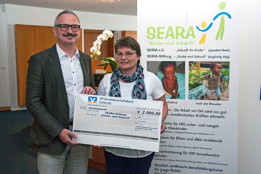 Das Jahr 2007 war für das Künzeller IT-Unternehmen ECOPLAN der Beginn einer fruchtbaren Zusammenarbeit mit dem Gießener CRM-Spezialisten CURSOR Software AG. Etwa gleichzeitig wurde in Hofbieber-Elters die Stiftung "SEARA – Kinder sind Zukunft" gegründet. Das 10-jährige Partnerschafts-Jubiläum nahmen die Unternehmen zum Anlass, die Arbeit von SEARA mit einer Spende von 2.000 Euro zu unterstützen.