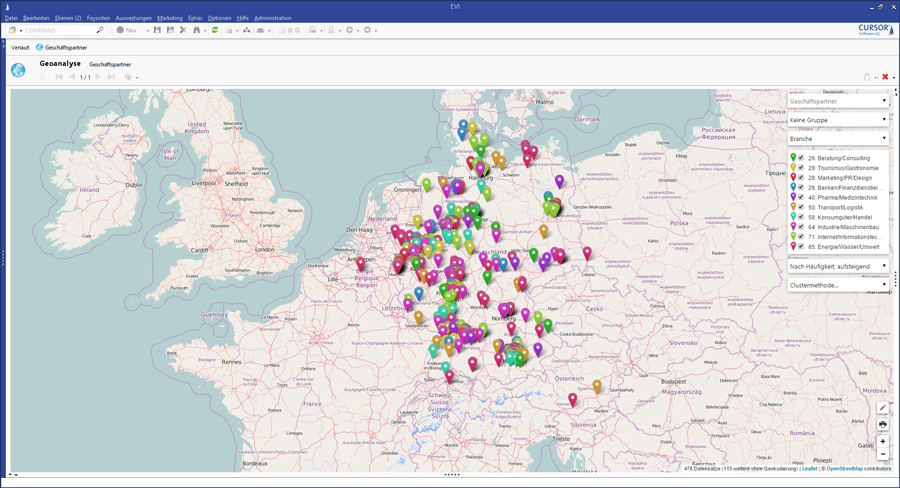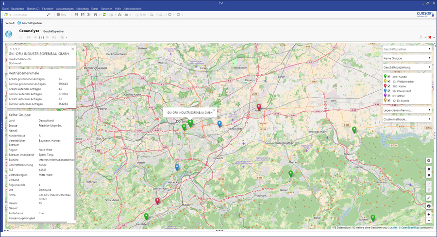 Die CURSOR-Geoanalyse bringt CRM-Daten auf eine anschauliche Karte. Das ist hoch attraktiv und erlaubt direkte Rückschlüsse für die Marktbearbeitung. Ein wichtiger Schritt zur Digitalisierung.