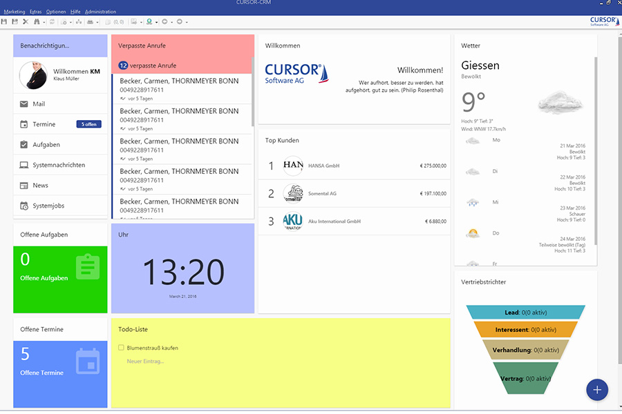Dank der attraktiven INFOBOARD-Technologie sehen die EVI- und TINA-Anwender nur das, was sie wirklich brauchen. Die visuellen Informationen werden auf der CRM-Daten Basis gestaltet und zeigen somit bei der täglichen Arbeit, was zu tun ist. Egal, ob Sie im Servicebereich, dem Vertrieb oder in der Anschlusstechnik arbeiten – dank CURSOR haben Sie alle passenden Informationen immer parat und stets aktuell.