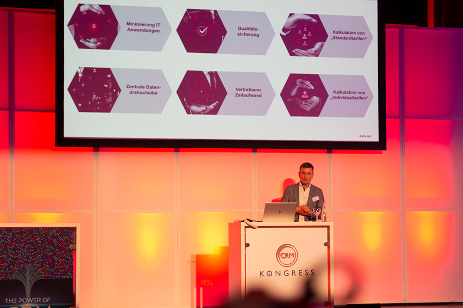 Mit über 20 Vorträgen auf zwei Stages deckte das Kongress-Programm ein breites Themenspektrum ab. Die Teilnehmenden erlebten live, was The Power of CRM in der Praxis bedeutet – von Anwendern für Anwender. Wer sich für aktuelle Neuerungen rund um die CURSOR-Branchenlösung EVI interessierte, für den waren u. a. die Vorträge zur Abbildung von SLP-Prozessen oder Tarifkalkulation in EVI erste Anlaufstelle. Anian Bader von der AVIA Deutsche Mineralöl-GmbH erläuterte die Möglichkeiten von EVI als skalierbarer und zentraler Datendrehscheibe in Sachen Tarifkalkulation und betonte u. a. „Schnittstellen müssen gestreichelt werden.“