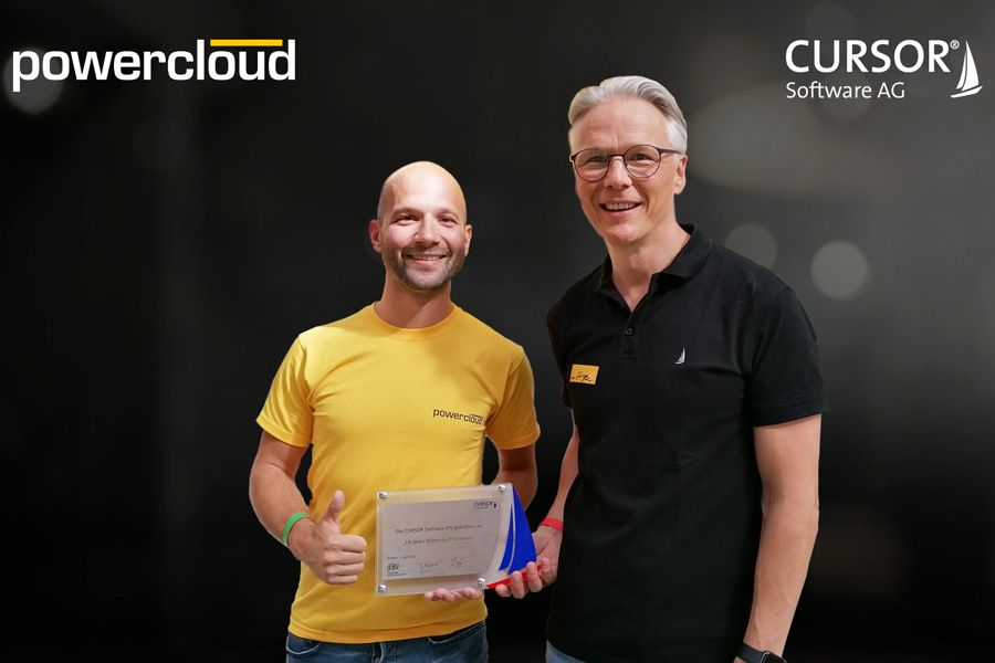 powercloud-CEO Marco Beicht und CURSOR-Vorstand Jürgen Heidak, Foto: CURSOR/powercloud