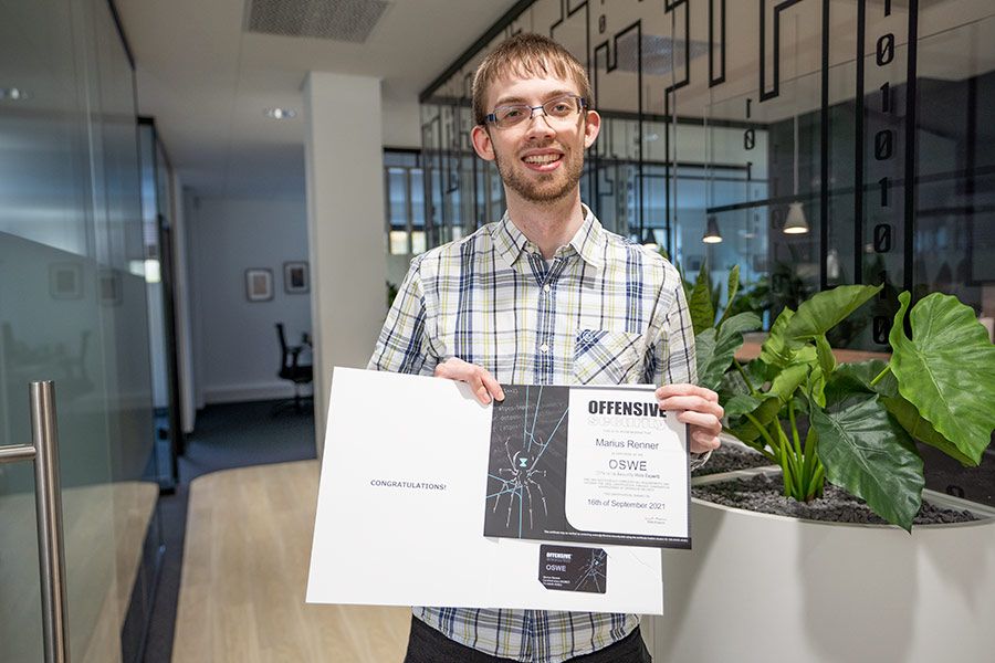 Gratulation an Marius Renner: Unser Kollege aus dem Bereich Software-Entwicklung darf sich jetzt offiziell Offensive Security Web Expert nennen!